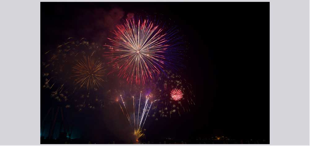 ويرى سكان دبي وزوارها أن البهجة لا تكتمل، إلا بالألعاب النارية، فقد تجمهر عدد كبير من الجمهور لمتابعة عروض الألعاب النارية الشيقة والبسمة مرسومة فوق شفاههم.