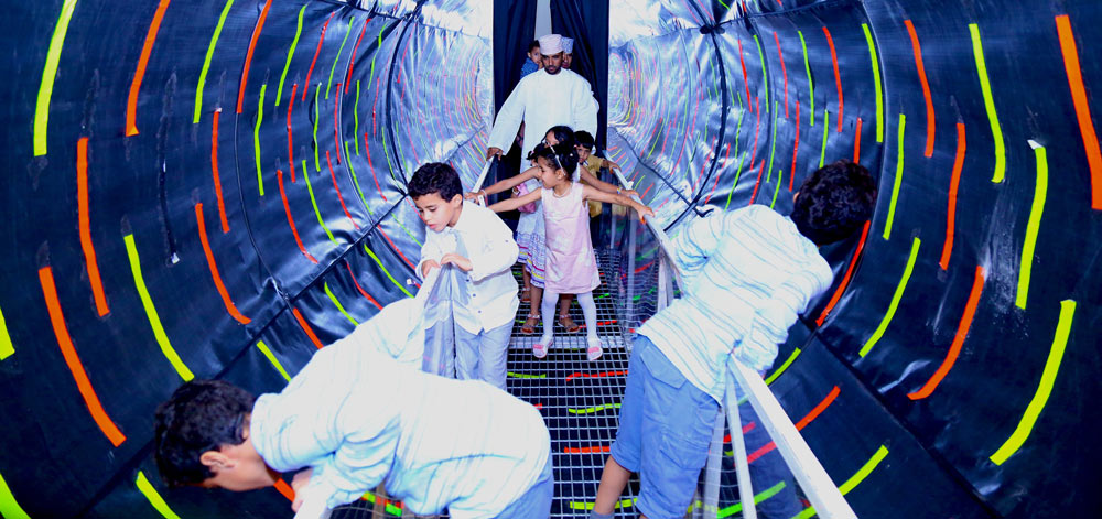 ويعتبر النفق الصغير الذي يشبه الصندوق من الخارج، واحداً من أهم الألعاب التي تستقبل الزوار عند دخولهم من القاعة رقم 1 والقاعة رقم 8، حيث يتمكن الزائر من اكتشاف وتجربة مقدرته على التركيز خلال المسير وسط نفق يدور بألوان كثيرة تسحر العيون.