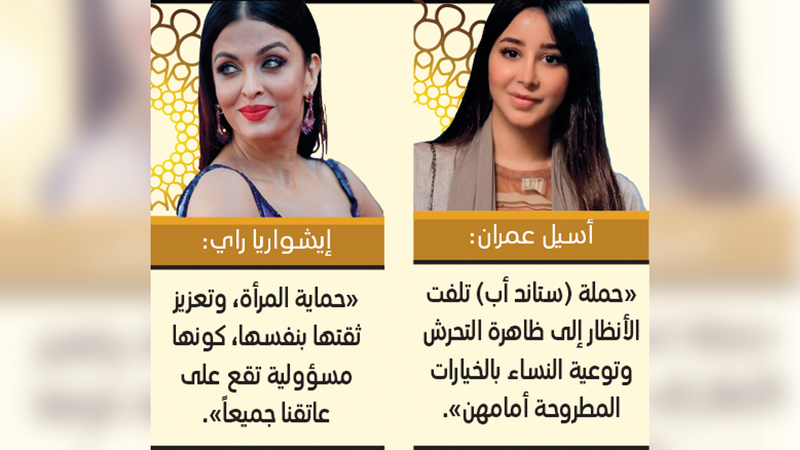 كما شاركت نجمة بوليوود آيشواريا راي، وقالت: «نجتمع اليوم هنا لنشر التوعية، وتشجيع الحوار حول قضية مهمة، وهي حماية المرأة، وتعزيز ثقتها بنفسها، كونها مسؤولية تقع على عاتقنا جميعاً».
