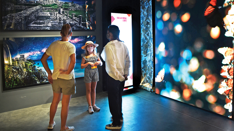 أروقة الجناح تتضمن عروضاً على شاشات ضخمة