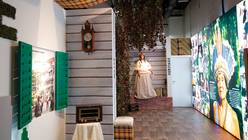 إنها سورينام، تلك الدولة المغمورة في أميركا الجنوبية، فهي أصغر دولة ذات سيادة، من حيث المساحة وعدد السكان في أميركا الجنوبية، لكنها على الرغم من ذلك تصنف باعتبارها «رئة الأرض»، لما تولده من أكسجين، بفضل الغابات التي تمثل نحو 93% من مساحتها، كما أن جناحها يحوي تفاصيل مثيرة للغاية، منها «شجرة الحياة» التي تؤوي مئات الأنواع من الطيور والحيوانات، تعيش معاً بألفة وانسجام نادرين، بالإضافة إلى قصص مدهشة حول دولة تصنف باعتبارها من أكثر الأوطان تسامحاً وتنوعاً عرقياً ودينياً وثقافياً في العالم.ويسيطر على زائر «إكسبو 2020»، شعور مختلف حين يدخل جناح دولة سورينام، فثمة دفء غير معتاد، وطاقة إيجابية تسيطر على المكان، سببها كما تحكي المرشدة الثقافية بالجناح، جيرمين أوستويك، طبيعة شعب سورينام، الذي يتكون من أعراق عدة.