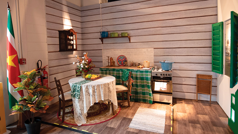 ولا يخلو جناح سورينام من تفاصيل طريفة، منها الزي التاريخي للمرأة، إبان عهد الاستعمار، والذي كان عبارة عن لغة تخاطب عاطفية وإنسانية، إذ كان العبيد آنذاك غير مسموح لهم بإقامة علاقات طبيعية، لذا كانت المرأة ترتدي القبعة بطريقة معينة لتحدد موعداً مع الرجل.