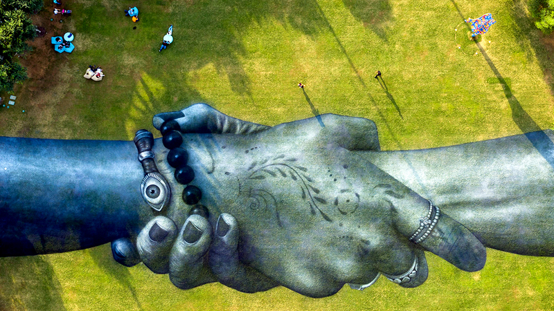 ويُنظر للفنان التشكيلي «سايب» كرائد في حركة «فن الأرض»، وفي عام 2019 شكّلت جدارياته التي تصور مجموعة من الأيادي المتشابكة أطول سلسلة بشرية على الإطلاق في باريس، حيث امتدت على طول المساحات الخضراء أسفل برج «إيفل»، وأعيد رسمها منذ ذلك الحين في وجهات مثل برلين وأندورا وجنيف وإسطنبول وكيب تاون، والآن في «إكسبو 2020 دبي».