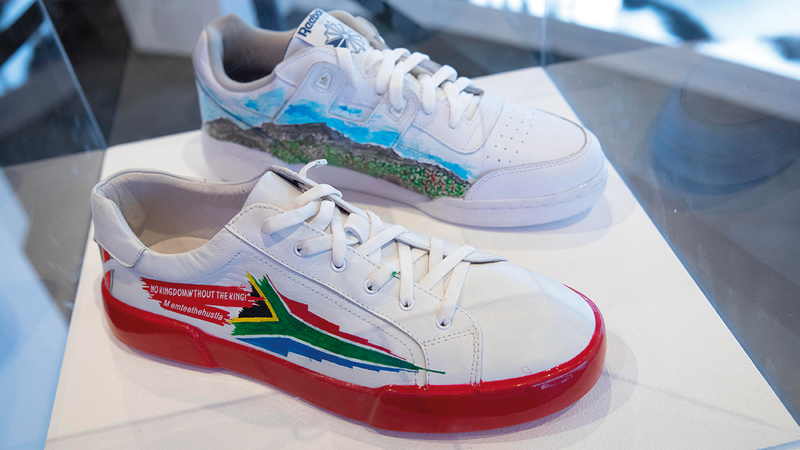 ويستعرض جناح جنوب إفريقيا في «إكسبو 2020» فن رسم اللوحات اليدوي، وصناعة الأحذية الرياضية، ويعرض حالياً 11 تصميماً مختلفاً طرأت عليها لمسات فنانين معززة، تجسد اللغات الرسمية البالغ عددها 11 لغة التي يتكلمها شعب الدولة المتنوع، وهي الأفريكانية، والإنجليزية، ونديبيلي، والكوسية، وزولو، وبيدي، وسوثو، وتسوانا، وسوازي، وفيندا، وتسونغا.
