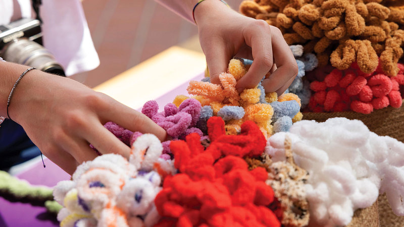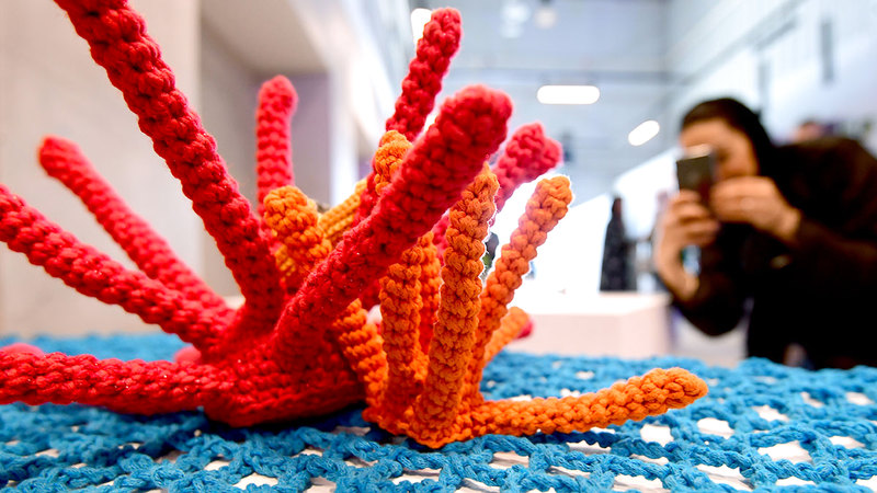 وتستمر الورشة التي تنظم وسط أجواء مفعمة بالحيوية والنشاط والمتعة طوال فترة انعقاد «إكسبو 2020»، بمشاركة فريق من الخبراء الذين يعلمون المشاركين طريقة الحياكة بالأصابع والكروشيه، وتنفيذ مجموعة من الأشكال الجميلة المستوحاة من الشعاب المرجانية والبيئة البحرية.