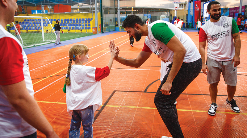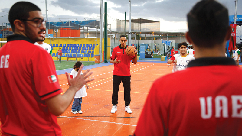 لاعبو منتخب السلة الإماراتي يشاركون مهاراتهم مع زوار «إكسبو 2020 دبي»