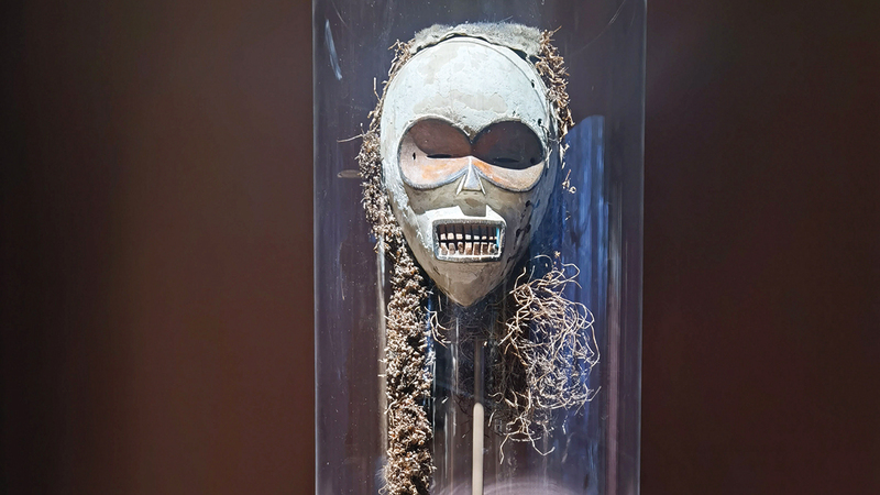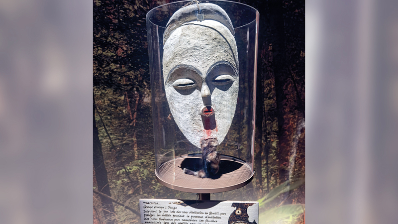 ويقف الزوّار مطولاً داخل جناح الغابون وهم يشاهدون مجموعة من الأقنعة الخشبية، التي تثير الرهبة في النفوس بسبب غرابتها. وقد يتخيل البعض أنها نحتت حديثاً، على غرار التحف الإفريقية التي تُباع في الأسواق. لكن الحقيقة أنها قطع أصلية تحمل أسماء معينة، هي: (كدما وموي وتستس وأوس وموهان وميودي وأكوا وموكدجي).
