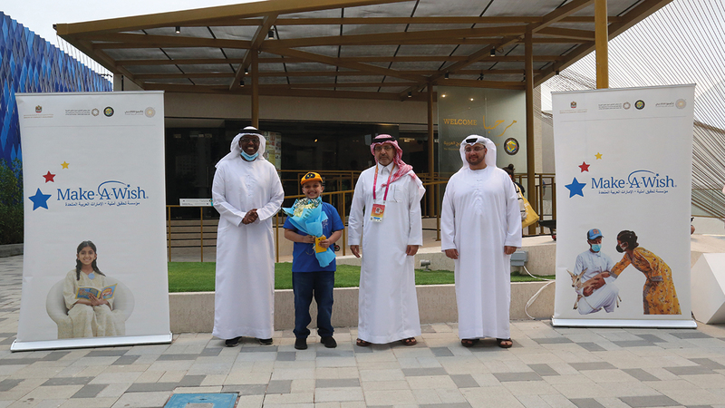 باستقبال شديد الخصوصية، أضفى «إكسبو 2020 دبي» السعادة على قلب الطفل (خالد)، خلال الزيارة التي تمت بالتعاون مع مؤسسة «تحقيق أمنية»، ووزارة تنمية المجتمع، وجناح دول مجلس التعاون لدول الخليج العربية في المعرض العالمي.