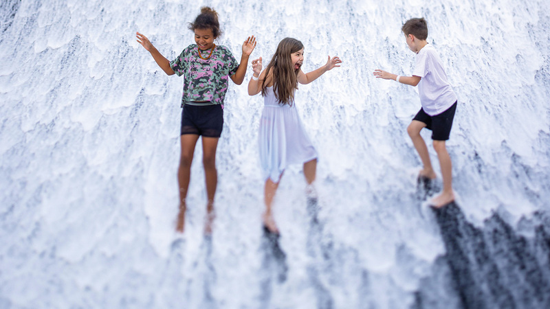 عين إكسبو.. مرح ثلاثي في «الشلالات»