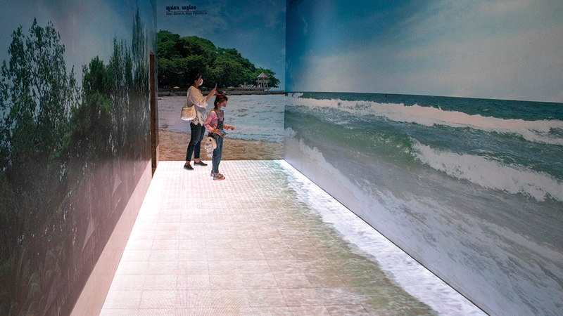 بانبهار، وقفت الزائرة الصغيرة في جناح كمبوديا بـ«إكسبو 2020 دبي»، وكأنها تتساءل: «هل هذا بحر وتلك موجة حقيقية بالفعل؟»، محاولة الاقتراب أكثر، لتكتشف التصميم الرائع الذي يوحي للضيوف بأنهم أمام «الأزرق الشاسع»، وثمة مياه بالفعل في الجناح.