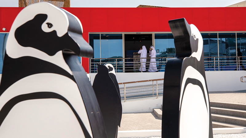 من أمام بوابة جناح تشيلي في منطقة التنقل ترحب مجسّمات البطاريق بزوّار «إكسبو دبي»، إذ تُعدّ تشيلي - التي تُعرف بتنوّع البيئات - من أفضل الأماكن لرؤية هذه الطيور التي يحبها الصغار والكبار.