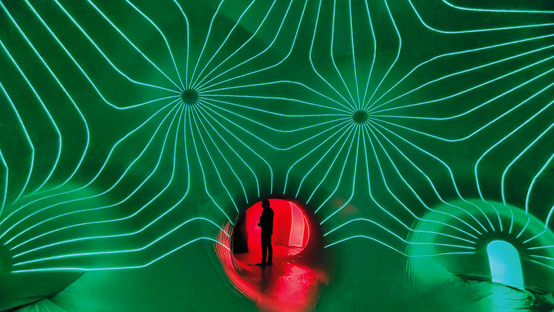 أبهر الهيكل الفني المضيء «دوديكاليس» زوّار «إكسبو 2020 دبي»، فاتحاً لهم تجربة فنية فريدة من نوعها، أبدعها مهندسو الهواء، وهي «دوديكاليس لومينيريوم»، التي انطلقت في حديقة الاحتفالات، أول من أمس، من خلال هيكل عملاق قابل للنفخ يتشكل من ثلاث قباب، ومتاهة متوهجة ملوّنة في الداخل.