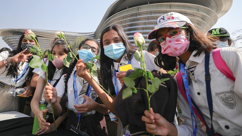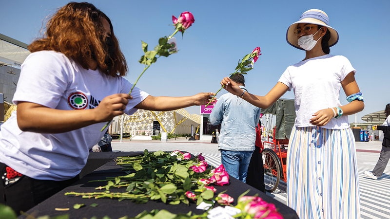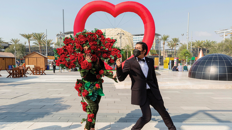 بالمشاعر الجميلة، والورود الزاهية بكل الألوان، وعلى رأسها الأحمر، تزينت جنبات «إكسبو 2020 دبي»، إذ احتفى المعرض الدولي بمناسبة يوم الحب، ناشراً أجواء من السعادة بين العاملين والزوار من كل الأعمار، لتحضر في كل يد بالمعرض وردة.