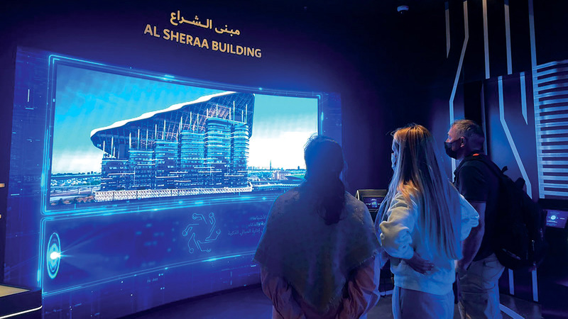 لفت عرض لـ«مبنى الشراع» في جناح هيئة كهرباء ومياه دبي، أنظار الزوّار، إذ يُعدّ أكبر وأذكى مبنى حكومي في العالم يحقق «صفر انبعاثات كربونية».