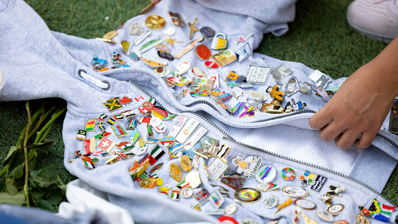 مرتين أسبوعياً، كان الطفل الإسباني أندريه مونكلوس كويو، يقطع طريقه من أبوظبي إلى «إكسبو 2020 دبي»، ليحقق شغفه بجمع الدبابيس التذكارية، ورؤية أكبر عدد من الأجنحة، ليتمكن حتى الآن، من جمع 240 دبوساً استخدمها في تزيين سترته التي أصبحت تزن ثلاثة كيلوغرامات، مشيراً إلى أنه لا يشعر بثقلها، ولا يمانع أن يضيف عليها أوزاناً أخرى.