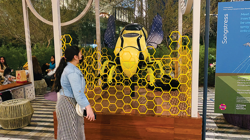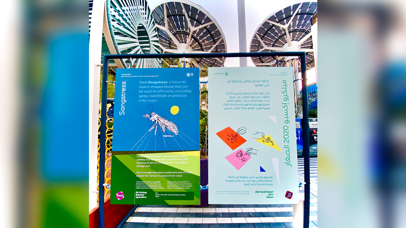 «طائرة سونغسترس» صديقة للبيئة توفر حلاً مستداماً وفاعلاً للمزارعين، لحماية محاصيلهم من الآفات بالمبيدات، وتسهم في تقليل تأثير المواد الكيميائية في البيئة. وتعدّ الطائرة - التي تأتي على شكل نحلة - واحدة من 298 ابتكاراً لـ«مبتكرو إكسبو 2020 الصغار» برنامج المدارس، الذي دعا الطلاب من مختلف أنحاء الدولة لإطلاق العنان لخيالهم وتطوير ابتكارات وحلول لضمان خلق مستقبل مشرق للأجيال المقبلة، مع إمكانية عرضها في معرض «مبتكرو إكسبو 2020 الصغار»، التابع لـ«تيرا» - جناح الاستدامة، في المعرض الدولي الأكبر بالمنطقة.