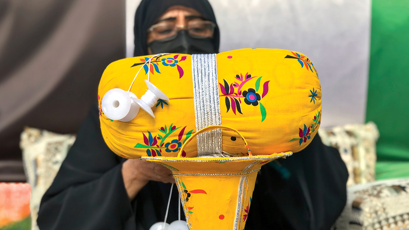 في جناح صميم بـ«إكسبو 2020 دبي»، تقدم المواطنة عائشة سالم الشامسي (أم عمار)، عرضاً حياً لحِرفتها التقليدية «التلي»، التي تعلمت فنون صنعتها من جدتها، حتى باتت تتقن تفاصيلها الدقيقة. وتدخل في صناعة التلي - حسب (أم عمار) - خيوط يطغى عليها اللونان الذهبي والفضي، وتلف مع بعضها بعضاً لتخلق شريطاً مميزاً يدخل في صناعة الملابس النسائية. يشار إلى أن جناح صميم يسلط الضوء على مهن الأجداد التي توارثها الأبناء والأحفاد في دولة الإمارات أمام زوّار المعرض.