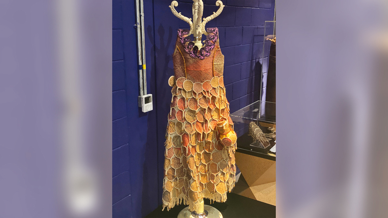 ثقافات إكسبو.. ارتدته «سيدة أولى».. فستان بأوراق النخيل والقرع