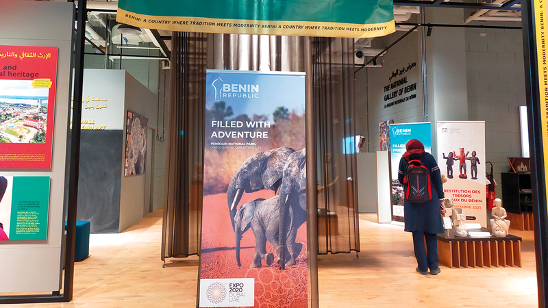 تبهر الألوان الإفريقية الخالصة والحكايات المرسومة حول النساء في جناح بنين، بمعرض «إكسبو 2020 دبي»، زوّار الحدث الدولي، حيث تمثل النساء قلب ثقافة وتاريخ تلك الدولة الإفريقية.