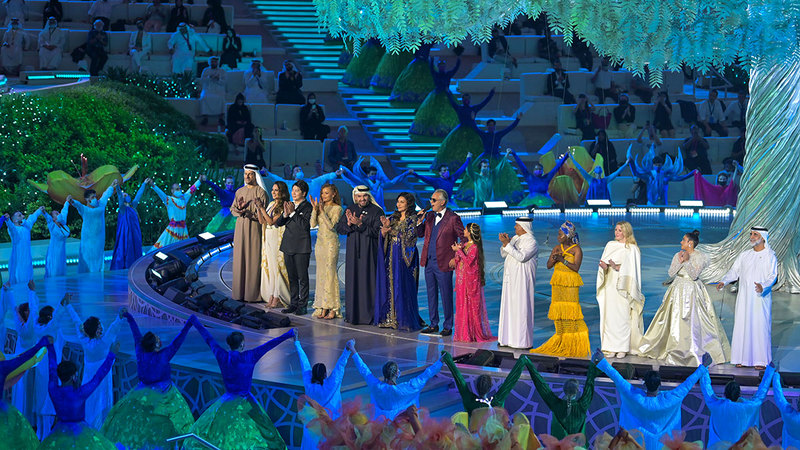 في ليلة كاملة الأوصاف، ترصّعت بأضواء ساحة الوصل الجميلة في قلب «إكسبو 2020 دبي» وأصوات النجوم، شدا نجوم عرب وأجانب في حفل افتتاح الحدث العالمي، ليلتقي المطرب الإماراتي حسين الجسمي، مع فنان العرب محمد عبده، ومغني الأوبرا الإيطالي أندريا بوتشيلي، والبريطانية إيلي جولدينج، وعازف البيانو الصيني لانغ لانغ، والإماراتية أحلام، وآخرين.. في أمسية أولى بـ«إكسبو دبي»، الذي وعد ضيوفه بإبهار متواصل، على مدار ستة أشهر.. لن يتشابه فيها يومان.