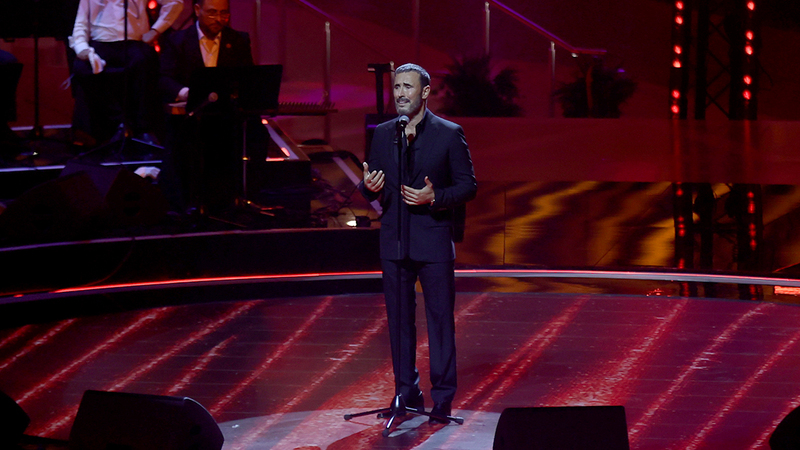 وواصل استعراض مساره الحياتي، فراح يدمج في أغانيه بين الرومانسية والإيقاعات الشرقية، التي تطبع كثيراً من ألحانه الموسيقية، كما استمع الحضور إلى مجموعة من أغنياته الحديثة، وتحديداً «ما هو المطلوب مني»، التي قدمها للمرة الأولى خلال الحفل، ولم تغب الإيقاعات العراقية، إذ غنى «ما حبك بعد»، و«آه وآهين»، و«كله كذب».