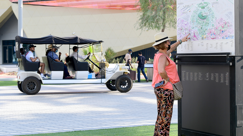 رحلة «إكسبو» عامرة بالتجارب الزاخرة والمحطات، وللتنقل بأريحية بين جنبات المعرض، تم توفير خرائط ورقية وشاشات ذكية لإرشاد الزوّار ولتسهيل حركتهم بين أجنحة المعرض. وتوفر خريطة «إكسبو» معلومات لمعرفة الفترة المتوقعة للوصول إلى الجناح التالي، والعثور على أقرب المطاعم، فضلاً عن إرشاد الزائر للعثور على وجهته في أنحاء الموقع.