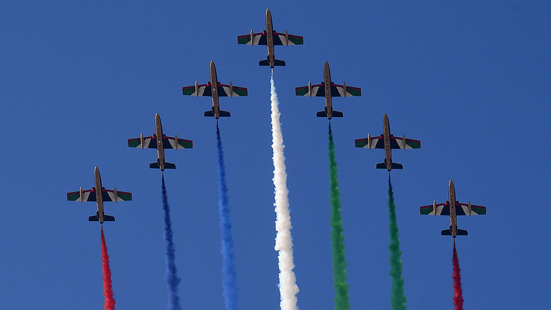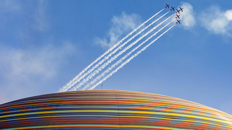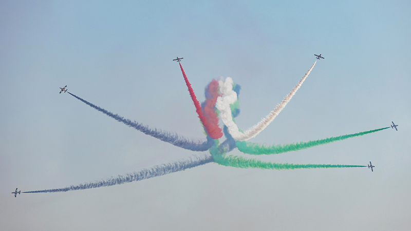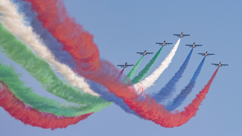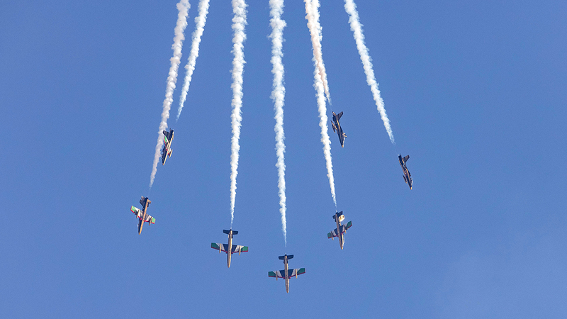 وقُدّمت العروض فوق موقع «حديقة اليوبيل» في «إكسبو 2020»، حيث ظهر مفعماً بالحيوية وزاخراً بالألوان المبهجة، فيما قدّم فريق «الصقور» السعودي، أمس، عرضه في الساعة 4 عصراً. وتُنظّم العروض الجوية بالتعاون مع جناح مجلس التعاون لدول الخليج العربية.
