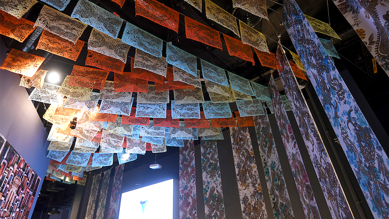 وشرحت أن الواجهة الخارجية للجناح تمثل لوحة فنية يدوية، حاكتها 200 امرأة من إقليم «خاليسكو» في الشمال الشرقي للمكسيك، ما يؤكد دور المرأة في المحافظة على التراث وإعادة إنتاجه، أو التعبير العصري عنه.