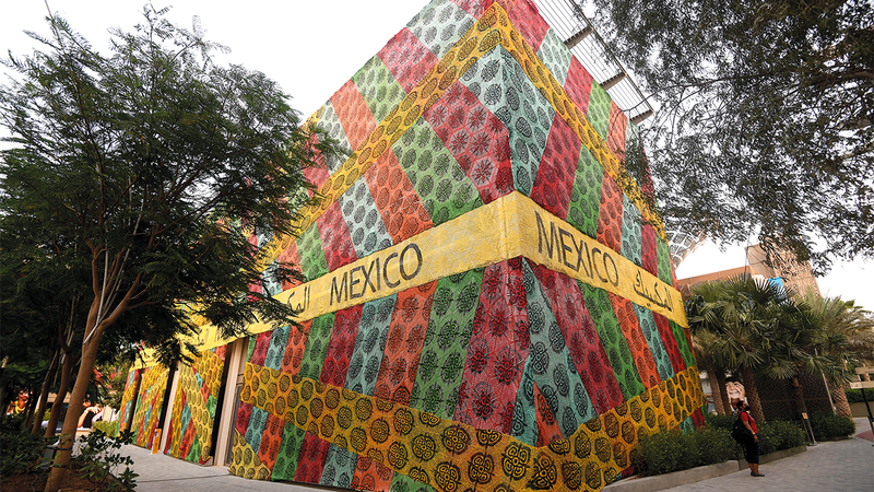 وأضافت أن تصميم الجناح المكسيكي يسلّط الضوء على شعار «نسيج الحياة»، الذي يتكون من خيوط متعددة، ثقافية وتراثية، ومن ضمنها الصناعة النسيجية التقليدية.