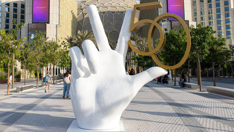 وتحتفل دولة الإمارات في الثاني من ديسمبر المقبل بمرور 50 عاماً على تأسيس الاتحاد على يد المغفور له الشيخ زايد بن سلطان آل نهيان، طيب الله ثراه، في عام 1971. ويُحيي «إكسبو 2020 دبي» هذه الذكرى باحتفال في قبة الوصل يستمر من الأول حتى الرابع من ديسمبر بعنوان «رحلة الخمسين»، إذ يقدم مزيجاً بين الأداء البشري والمسرحي، مبرزاً الإمكانات الهائلة لقبة الوصل في مشهد لم يسبق له مثيل، وبمشاركة طاقم مؤدين يضم أكثر من 200 فرد.