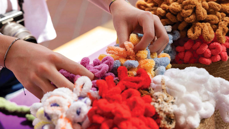 يمكنكم الاستمتاع بتجربة إبداعية عملية، يعلمكم خلالها فنانون من أفراد مجتمعنا كيفية استخدام تقنيات الحياكة بالأصابع لصنع كائنات بحرية جميلة في «بيت الهامور».