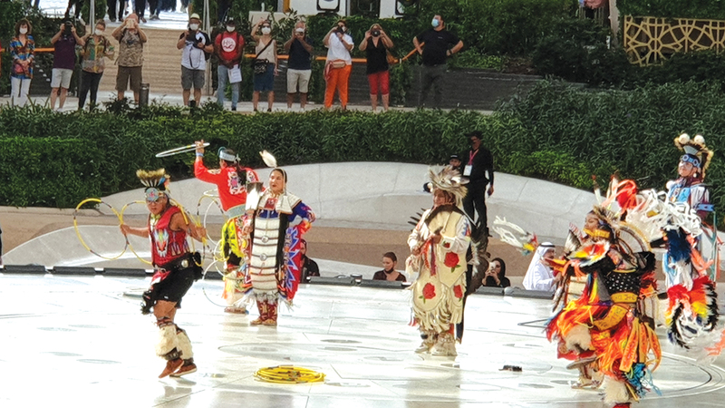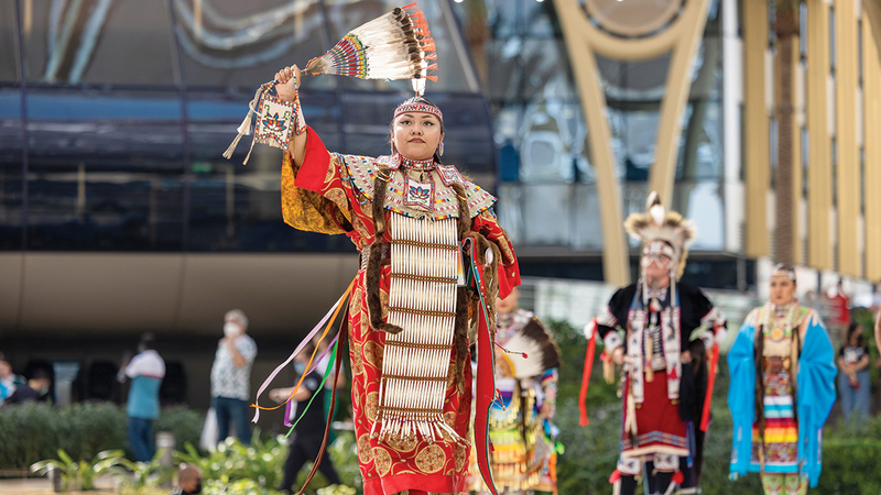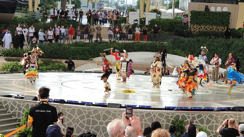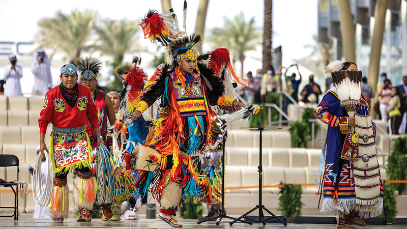 احتفل جناح الولايات المتحدة الأميركية، أمس، بعيد الشكر، بلوحات راقصة من تراث الفن الشعبي للهنود الحمر، السكان الأصليين لأميركا الشمالية، وذلك في ساحة الوصل وسط حضور عدد من زوار «إكسبو».