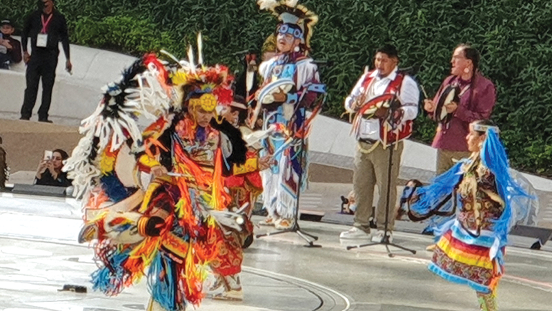 وتحدّث نينو ريوس، وهو عضو مسجل في «قبيلة بويبلو»، ومرشح للحصول على جائزة الموسيقى الأميركية الأصلية، مع الجمهور، عن المعنى الكامن وراء كل رقصة تم تقديمها خلال العرض، حيث تعلقت معظم اللوحات الفنية المقدمة خلاله بالرقصات الثقافية، ومنها «رقصة الشفاء»، و«ورقصة الدجاجة»، و«الرقصة الفاخرة»، وغيرها من الرقصات المميزة.