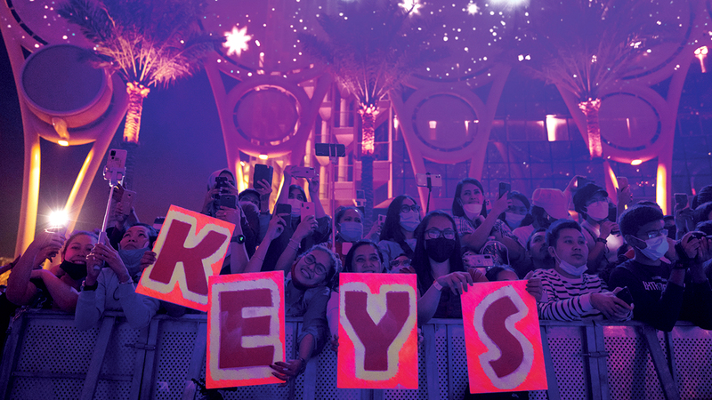 أمتعت المغنية العالمية، أليشيا كيز، جماهير «إكسبو 2020 دبي» بأداء مميز لأغنياتها، خلال حفلها الموسيقي، أول من أمس، في ساحة الوصل، إذ نُل الحفل على الهواء مباشرة إلى جميع أنحاء العالم عبر منصة «إكسبو 2020» الافتراضية: virtualexpodubai.com.