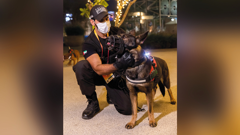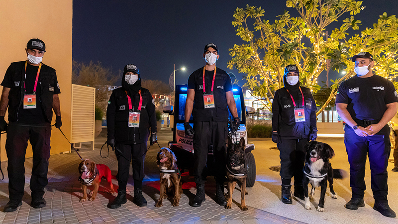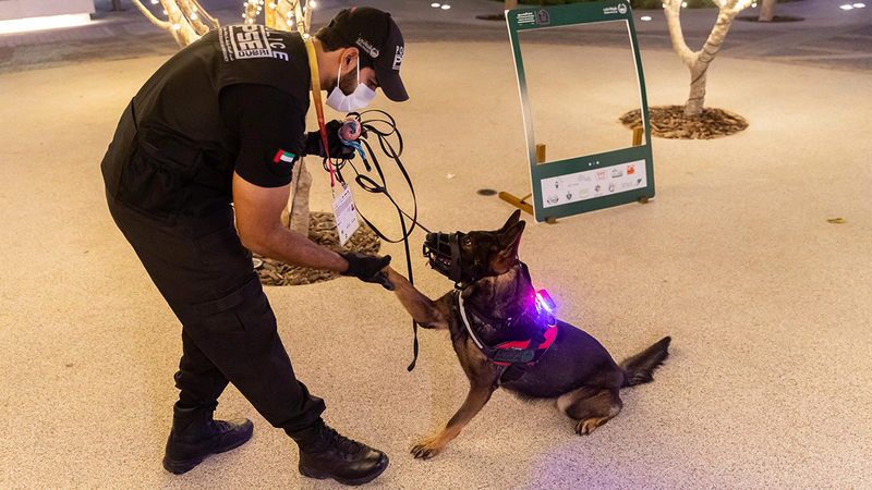 استعرضت إدارة التفتيش الأمني K9 في شرطة دبي مهارات التفتيش والتدريب للكلاب البوليسية في «إكسبو 2020 دبي».