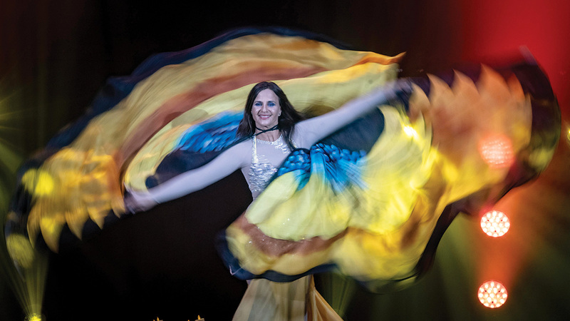 لوحات ملوّنة بالفرح والأضواء والجمال، رسمتها عروض فرقة «أنطونينا كانال بريم شاكتي» الكولومبية، في «إكسبو 2020»، أخيراً، مسافرة بجمهور مسرح «دبي ميلينيوم»، في رحلة إلى ثقافات عدة، على وقع مزيج من الأنغام والألحان العربية والأجنبية.