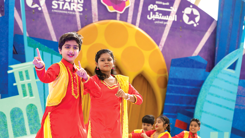 عاد «نجوم المستقبل» إلى ساحة الوصل في «إكسبو 2020 دبي»، ليستعرضوا مواهبهم الواعدة أمام جمهور المعرض العالمي، ويقدموا في أجواء من المرح والسعادة والملابس الجميلة فقرات استعراضية متنوّعة. وترسم اللوحات الفنية التي يقدمها أطفال من أعمار مختلفة لوحات جميلة تبرز ملامح من ثقافات عدة، تنجح في استقطاب الزوّار ممن يتفاعلون مع العروض التي يقدمها «نجوم المستقبل».