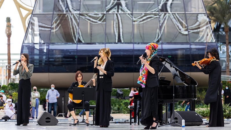 على وقع الموسيقى الراقية، احتفت مطربات وعازفات من سان مارينو، أمس، باليوم الوطني لبلدهن في ساحة الوصل بـ«إكسبو 2020 دبي». وقدّمت الفنانات أغنيات رومانسية تفاعل معها الجمهور بالتصفيق والهتافات.