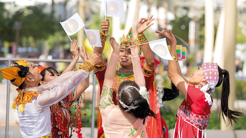 في قلب «إكسبو 2020 دبي» النابض، حضرت رقصات تقليدية مختلفة، تعكس تراث وتقاليد أجيال عدة، خلال احتفال جمهورية اتحاد ميانمار بـ«يومها الوطني» في «إكسبو 2020 دبي»، أمس.
