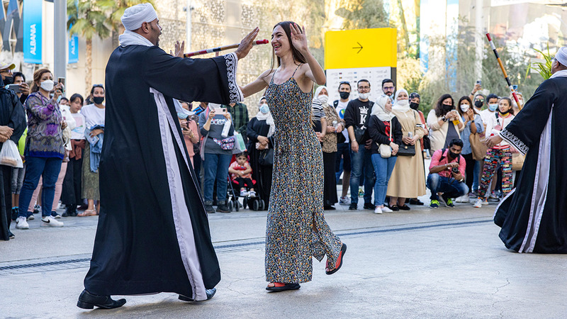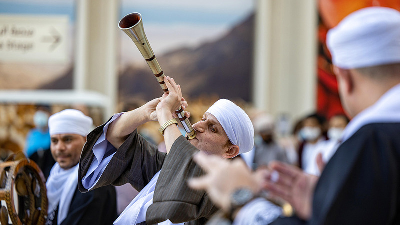 صوت المزمار «البلدي» القادم من أعماق مصر.. يصدح في «إكسبو 2020 دبي»، ليبهر الزوّار بأنغامه الفولكلورية، ويزفهم في ما يشبه «الفرح الحقيقي»، يقوده فنانون يعتزّون بأزيائهم التقليدية، ويعرضون ملامح من تراث «أم الدنيا»، خلال حدث يحتفي بروح الشعوب، وينطلق في رهانه على المستقبل، من أصالة الزمن الجميل التي تفاعل معها ضيوف المعرض.