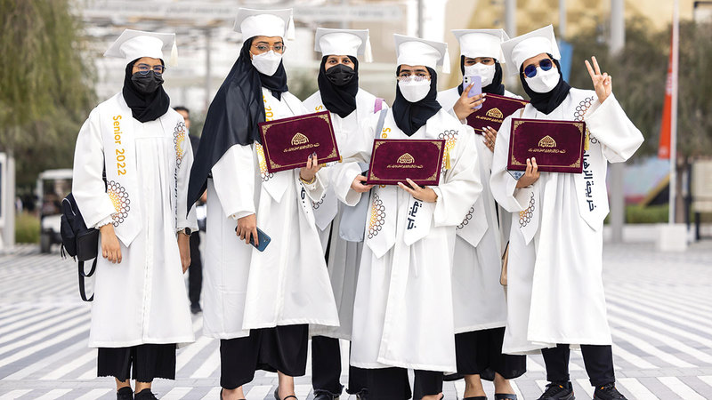 بأجمل القبعات، والأوشحة المزيّنة بشعار «إكسبو 2020 دبي»، طالبات من مدرسة فاطمة الزهراء للتعليم الثانوي للبنات، يحتفلن بنجاحهن وتفوقهن، واستعدادهن للانتقال إلى مرحلة جديدة، ليواصلن المشوار بحلم جديد، من على أجمل مساحة تجمع العالم، وتضم آخر ما توصلت إليه البشرية من ابتكارات وأفكار تسعد الإنسان.