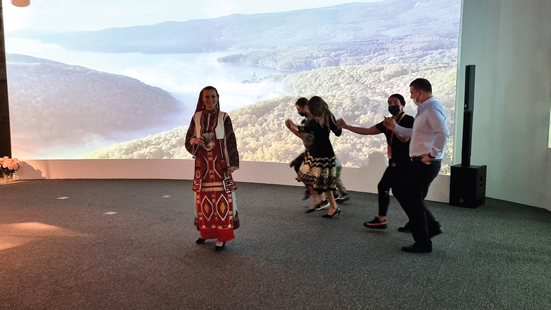 نجح صوت المطربة ومعلمة الموسيقى البلغارية، روميانا فيليبوفا، التي يستضيفها جناح دولتها الواقع في منطقة التنقل، في استقطاب زوّار، تفاعلوا مع الأغنيات التقليدية التي تقدمها الفنانة بالرقص على صوتها المميز.