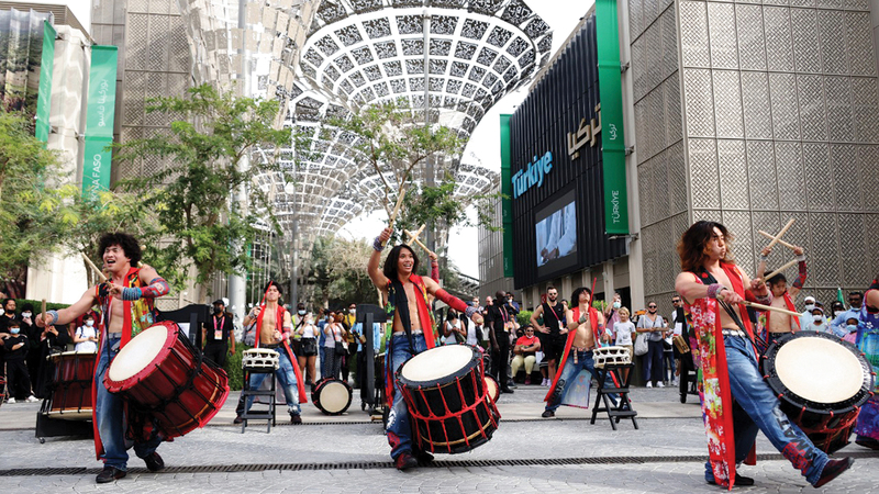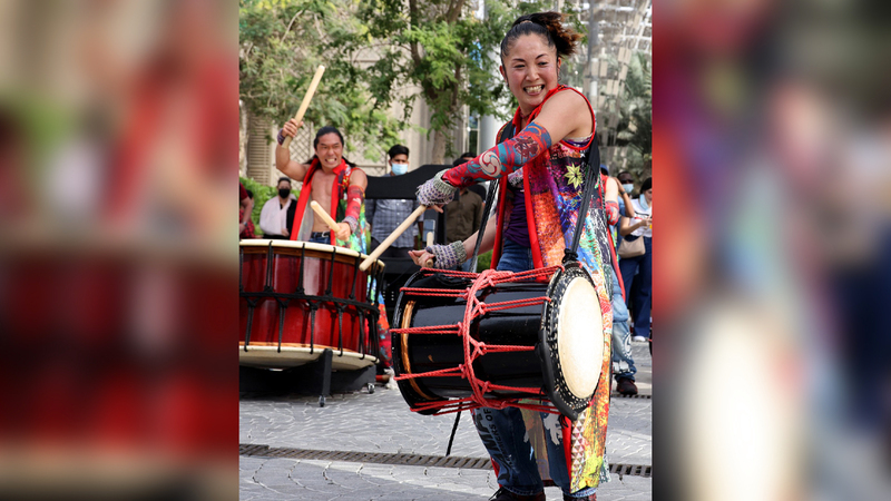من ساحات «بلاد الشمس المشرقة» إلى شوارع «إكسبو 2020 دبي»، جاءت فرقة «وادايكو ياماتو» اليابانية، حاملة طبولها ذات الإرث الطويل، لتقدم عروضها الموسيقية المبهجة أمام زوّار المعرض، الذي يستقطب زوّاراً من جهات العالم المختلفة. ودقت الفرقة طبول «التايكو» مستحضرة إيقاعات عريقة يمتد عمرها لأكثر من 400 سنة في وطنها الذي يحتفل بهذا اللون الحماسي من الأنغام.