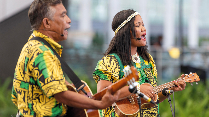 باستعراضات من الجزر الواقعة في أقصى المحيط الهادئ، احتفلت جمهورية جزر مارشال بـ«يومها الوطني» في «إكسبو 2020 دبي»، أول من أمس، داعية إلى اتخاذ المزيد من الإجراءات لمواجهة تغيّر المناخ.