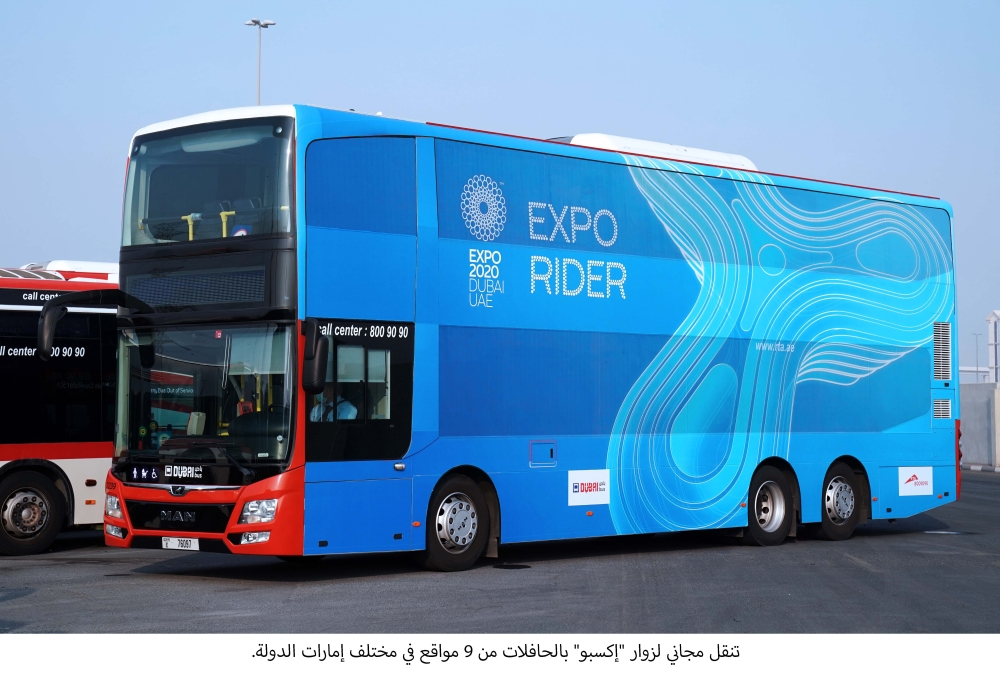 وضعت هيئة الطرق والمواصلات في دبي خطة متكاملة لنقل زوار معرض إكسبو 2020 من مختلف إمارات الدولة شملت تحديد 9 مواقع موزعة على إمارات أبوظبي والشارقة والفجيرة وعجمان ورأس الخيمة وتخصيص 70 حافلة تسير 193 رحلة يوميا في أيام الأسبوع ترتفع إلى 213 رحلة يوميا يومي الخميس والجمعة.