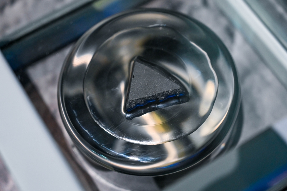 وخلال زيارة الجناح، يمكن أن يتعرف الزوار على قصة تلك الصخرة ولمسها. ففي الفترة بين 11 و14 ديسمبر من عام 1972، استكشف رائدي الفضاء من «أبولو17»، يوجين سيرنان، وهاريسون شميت، خلال سيرهم في منطقة يطلق عليها «بحر الصفاء» على سطح القمر، وهو سهل مظلم على سطح القمر. وخلال عملية الاستكشاف، لاحظ شميت، وهو جيولوجي، صخرة تميزت عن غيرها بسبب شكلها المميز وحجمها الكبير، ليكتشف لاحقا أن عمر الصخرة نحو 3.8 مليارات عام، وهي تعتبر أقدم من 99 % من الصخور الموجودة على سطح الأرض. كما تعد القطعة من أكبر العينات التي تم إحضارها من القمر، وهي واحدة من 11 عينة فقط في العالم.
