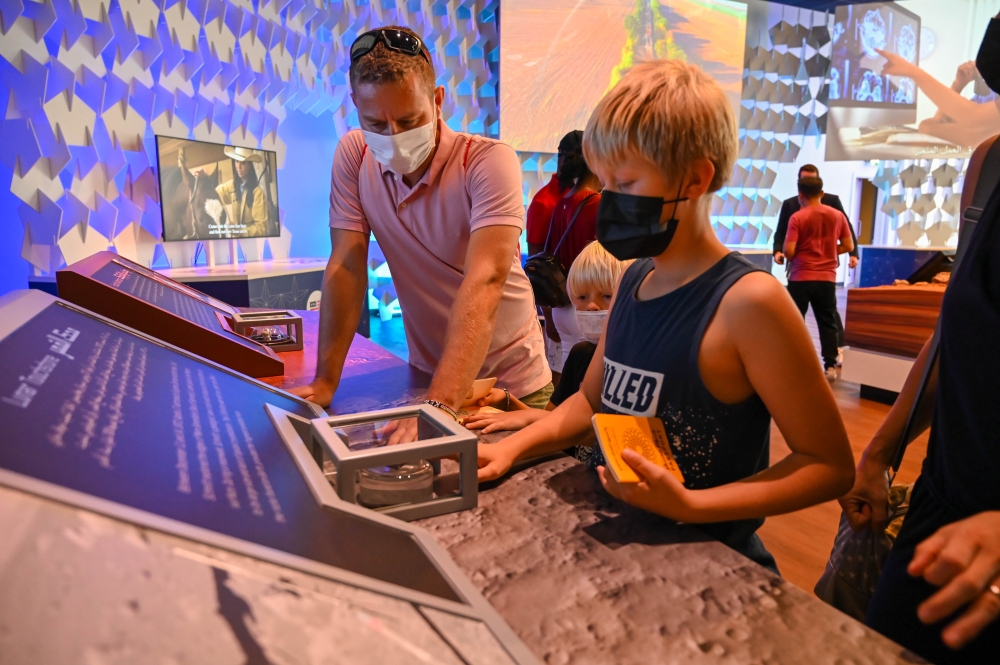 سيتمكن زوار معرض «اكسبو 2020 دبي» من لمس القمر ومشاهدة عدد من المنجزات البشرية في مجال الفضاء والطيران في الجناح الأميركي. وإلى جانب عرض الابتكار والتكنولوجيا، والتاريخ والثقافة، في الولايات المتحدة، يستطيع زوار الجناح، ملامسة قطعة من الصخور القمرية التي تم جلبها إلى الأرض خلال الرحلات الفضائية المكوكية لوكالة الفضاء والطيران الأميركية «ناسا» إلى القمر.