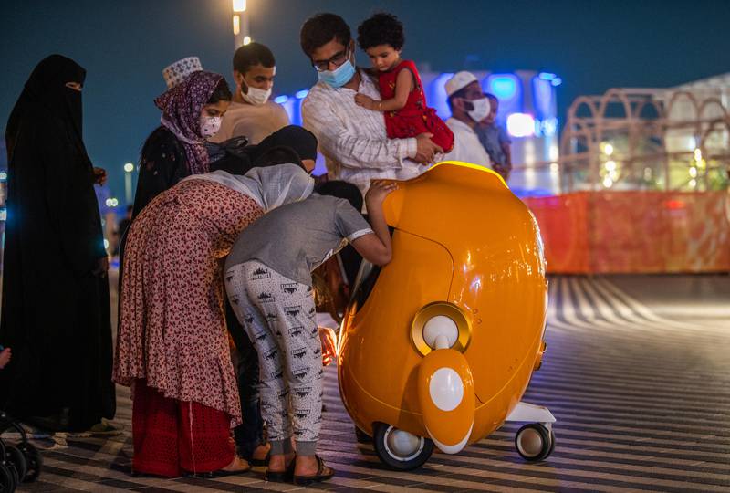 تشكل الروبوتات إحدى أكبر قصص النجاح في معرض اكسبو دبي، حيث يخطف الروبوت "أوبتي" الودود الأنظار بإكسبو 2020 دبي من خلال جولاته حول أجنحة العالم لتحية الزوار وتقديم بعض المعلومات مثل الاتجاهات، بجانب إضافة جو من المرح عبر إلقاء النكات والرقص على أنغام الموسيقى العالمية ويتواجد نحو 50 نسخة من هذا الروبوت، وتقول الشركة ترمينوس جروب التي ابتكرت أوبتي أنه موجه أكثر نحو الأطفال، لذلك حرصت أن يقوم الروبوت بتعبيرات وجه مختلفة للأطفال ليقفوا بجواره ويلتقطوا الصور.