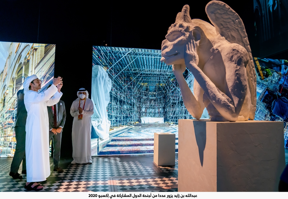 كما اطلع سموه على تجربة "نوتردام دو باري" التي يقدمها الجناح للزوار وهي معرض تفاعلي عن تاريخ الكاتدرائية الممتد 850 عاماً حيث تم الاعتماد في عرض هذه التجربة على تصميم المشاهد "السينوغرافيا" المادي والواقع المعزز.