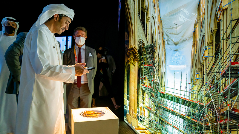 كما اطلع على تجربة «نوتردام دو باري» التي يقدمها الجناح للزوار، وهي معرض تفاعلي عن تاريخ الكاتدرائية الممتد 850 عاماً، حيث تم الاعتماد في عرض هذه التجربة على تصميم المشاهد «السينوغرافيا» المادي والواقع المعزز.